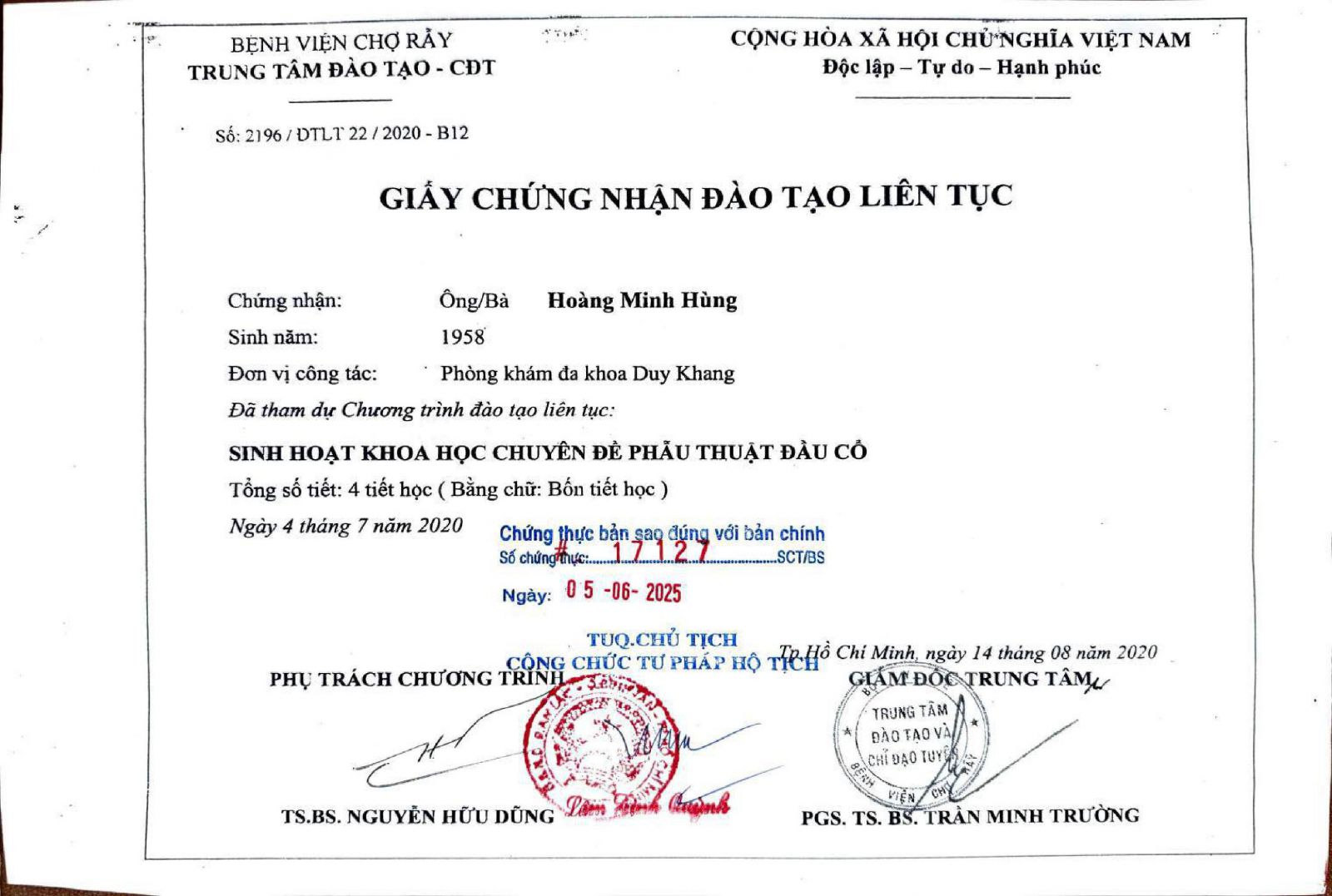 HỒ SƠ BÁC SĨ NGUYỄN THỊ KIM CẨM